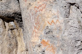 There were several areas of native American pictographs that we ran across, pictured here.